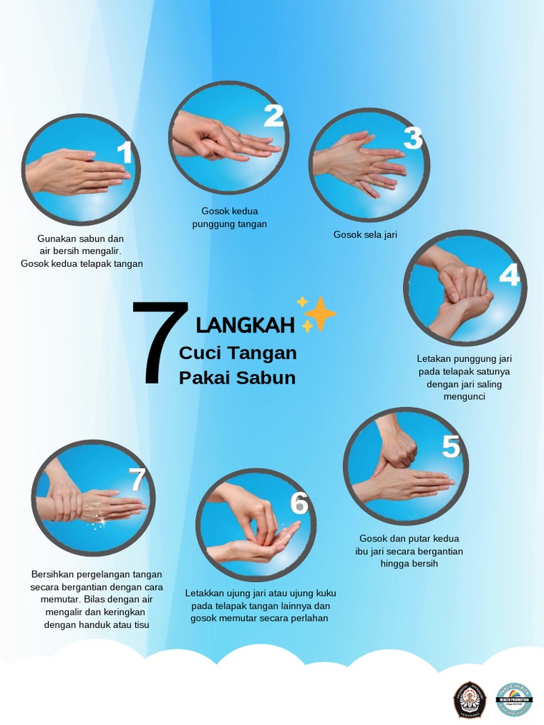Mencuci tangan dengan sabun harus menjadi kebiasaan bagi diri sendiri dan keluarga. Posisi kunci tangan putar tangan kanan kedalam putar ujung jemari tangan kiri. Untuk judul poster lainnya, silakan lihat di etalase toko/chat kami. Savesave 6 langkah cuci tangan pakai sabun for later. 5 langkah tepat cuci tangan pakai sabun :